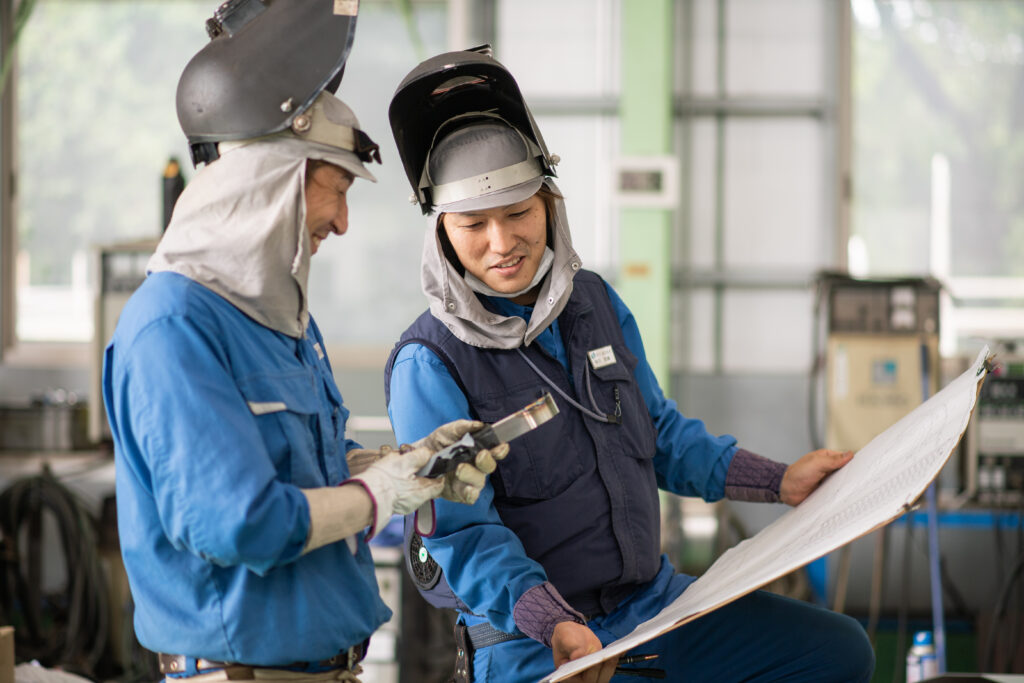 溶接がメインになりますが、レーザー切断や曲げ、熱処理や塗装まで社内で一貫して行っています。